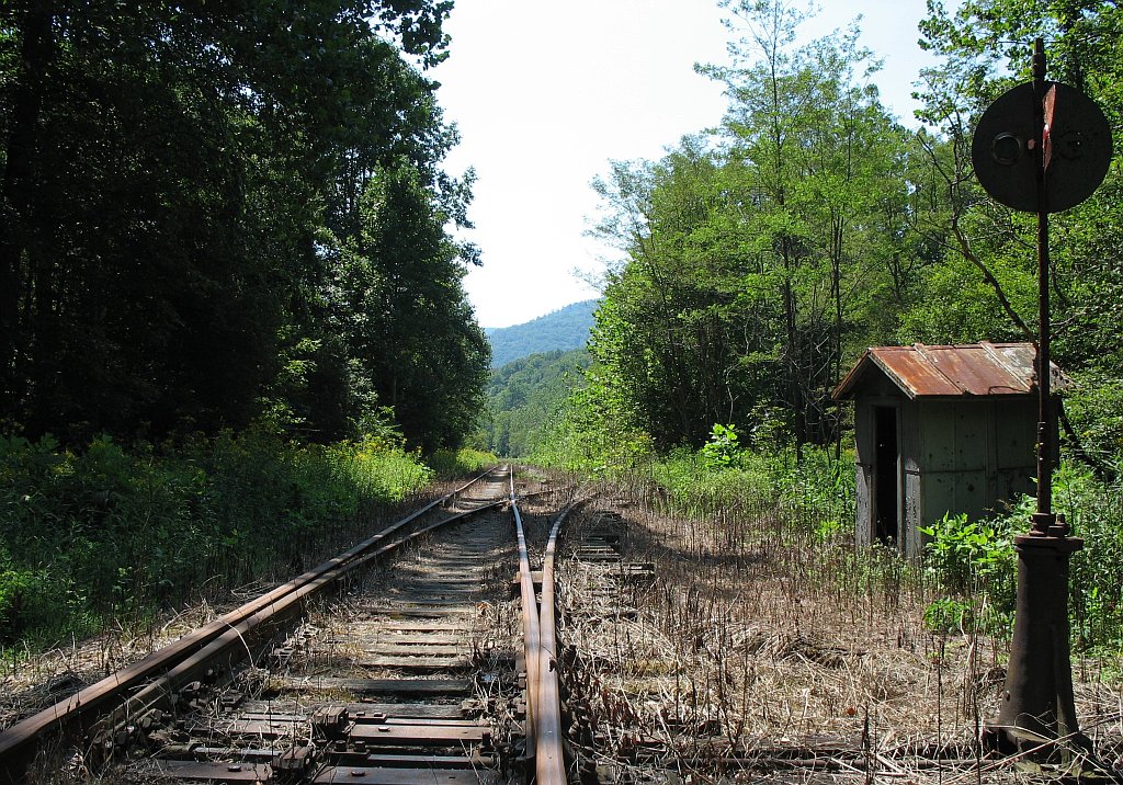 The Elk leads the way alongside the rail's west edge, sometimes veering away behind growth and trees only to come twisting back for a kiss-and-run.