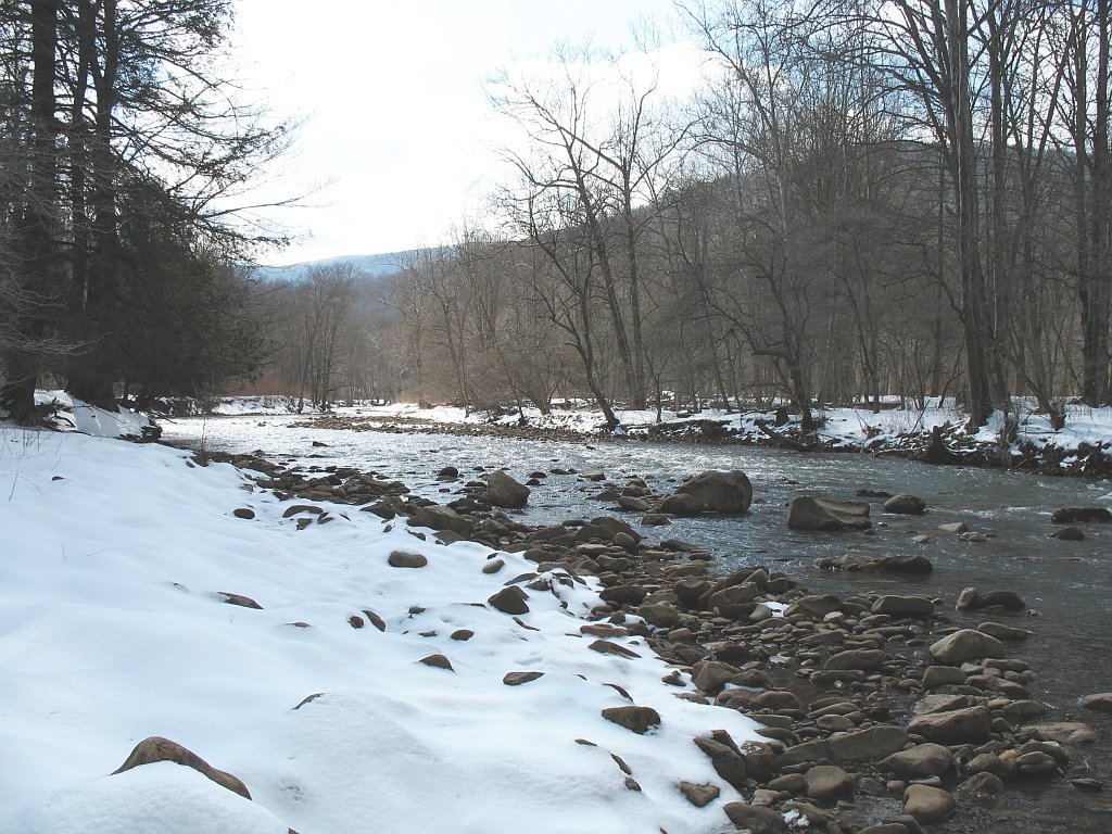 But today it is snowy and cold, albeit endurably so, and mostly the sound is that of the Elk, choosing this time to pounce its stones playfully, water splashing and sparkling.